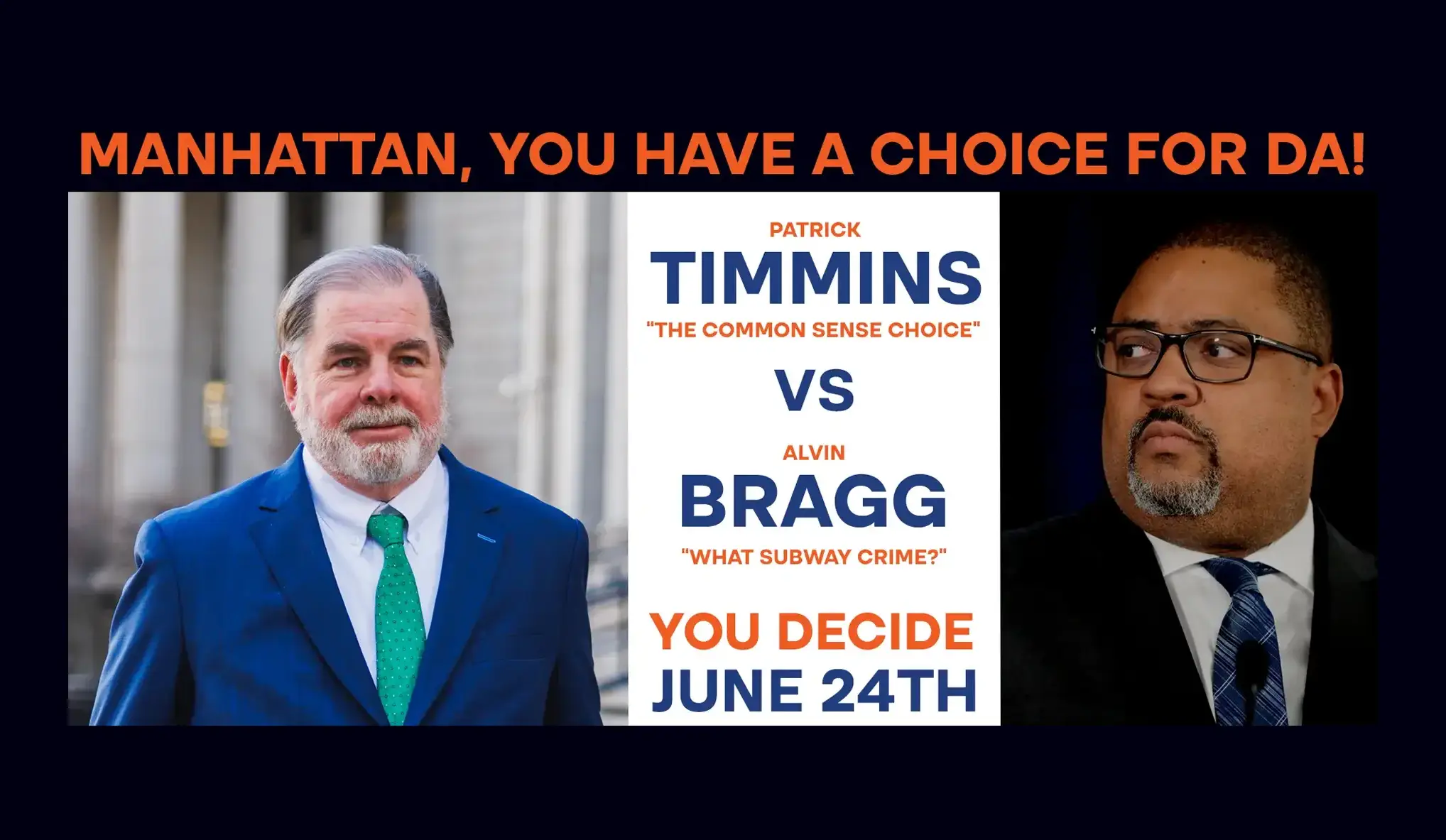 “Reducing enforcement and punishment of crime does not make Manhattan safe,” said Timmins. Alvin Bragg’s efforts to do so have backfired and have ended up harming New Yorkers. Bragg’s Day One Memo about what he was NOT going to do as a prosecutor has brought about increased crime and a perception of chaos in the subway and on our streets.” Timmins would move to reverse Bragg’s policies such as not prosecuting shoplifting, resisting arrest, and fare evasion. Timmins would work closely with the Police Commissioner and NYPD to restore the relationship with the District Attorney’s office and would urge the deployment of more police officers to ride the subway cars throughout Manhattan.